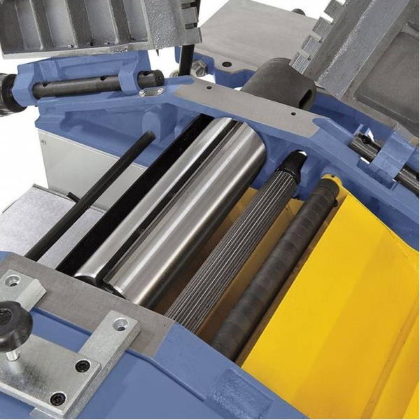 Masa masinii de rindeluit este de tip rabatabil pentru a usura fizarea piesei ce urmeaza a fi degrosata.
