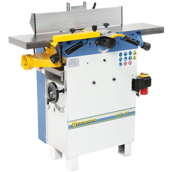 | Informatii suplimentare | Numar cutite: 3 bucati Rigla ghidaj: 700 x 145 mm Inclinarea riglei de ghidare: 90-45 grade Latime degrosare: 250 mm Adancime max. degrosare: 1.8 mm Iesire hota exhaustare: 100 mm Diametru bloc taietor: 75 mm Dimensiuni(LxlxH): 1100x750x1110 mm Inaltimea mesei: 920 mm Lungimea mesei de rindeluire: 1080 mm Lungimea mesei de degrosare: 600 mm Morteza nu este inclusa in setul de livrare! |
