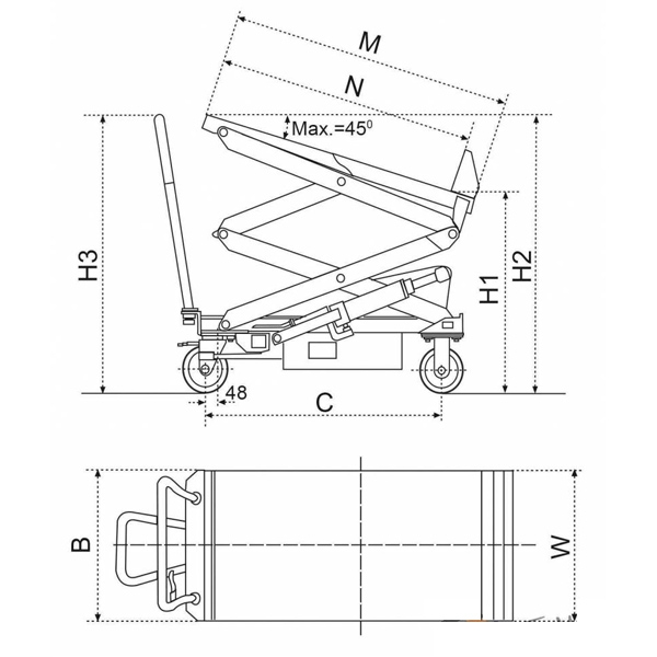 Bernardo HK 800 - Masa mobila cu lift hidraulic