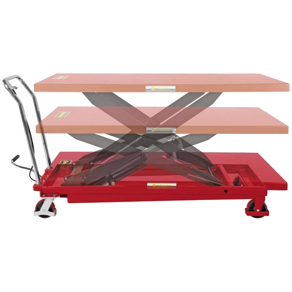 Masa mobila cu lift hidraulic Bernardo TG 1000 este recomandata pentru transportul si ridicarea de sarcini cu inaltimi de pana la 1360 mm si greutati de maxim 1000 kg.