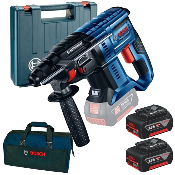 Pachet Bosch - GBH 180-LI - Rotopercutor SDS-Plus, 1.7 J, valiza plastic + Set 2 acumulatori, Li-Ion, 18 V si 5 Ah si incarcator GAL 1880 CV, 8 A, geanta textila