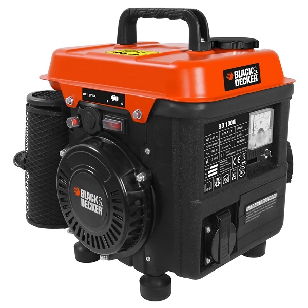 Generator de curent monofazat Black & Decker BD 1000i pentru uz casnic ce dezvolta pana la 850 W dotat cu motor pe benzina in 4 timpi.