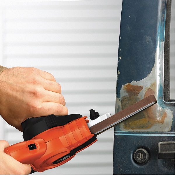 Sistemul benzii cu surub face slefuitorul mult mai usor de operat si previne ca banda sa iasa de pe role in timpul functionarii.