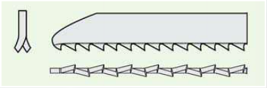 -si lamele cu dinti progresivi sunt fabricate -dupa nevoile de utilizare- din diferite materiale cu diferite geometrii ale dintilor. Corespunzator pentru cerinte pot fi pentru lemn, metal sau de utilizare universala.
