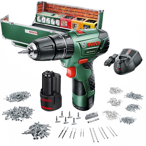 Bosch - PSB 10.8 LI-2 - Masina de gaurit si insurubat cu percutie cu 2 acumulatori, Li-Ion, 10.8 V, 2 Ah, 30 Nm, led iluminare, valiza speciala, accesorii