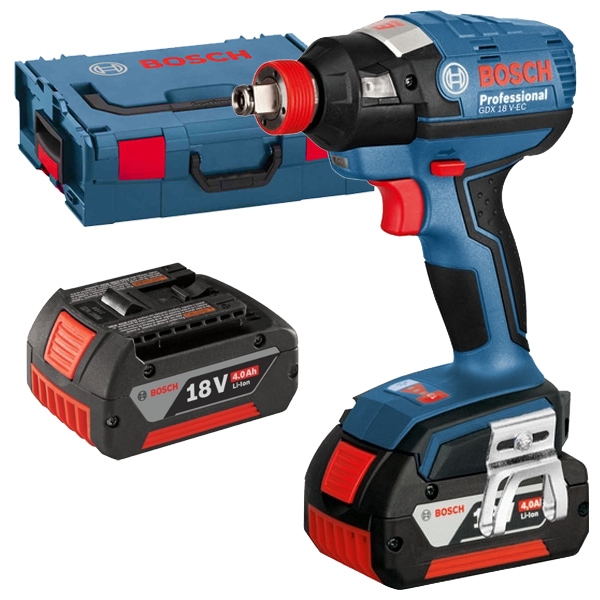 Bosch - GDX 18 V-EC - Masina de insurubat cu impact cu 2 acumulatori, Li-Ion, 18 V, 4 Ah, 185 Nm, M6-M16, motor fara perii, turatie reglabila, led iluminare, valiza speciala
