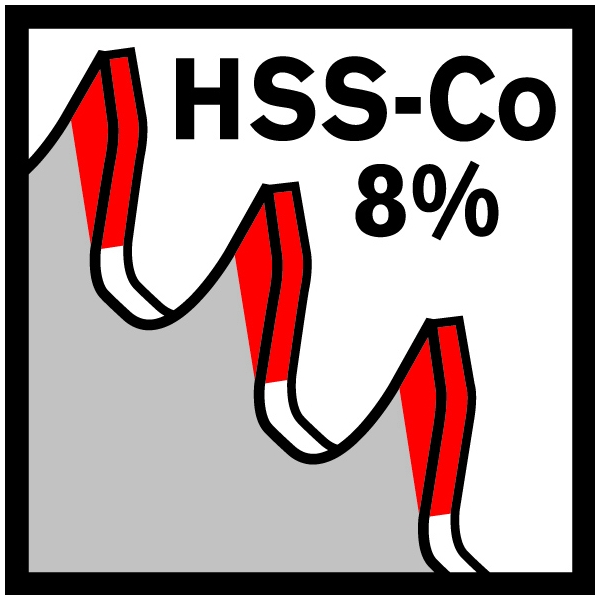 HSS bimetal cu aliaj de cobalt 8% pentru o rezistenta extrem de ridicata si o durata de viata indelungata.