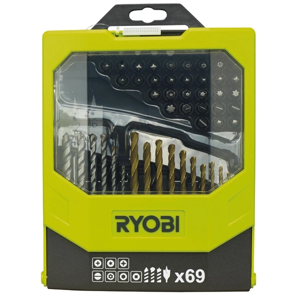 Ryobi - RAK69MIX - Set accesorii insurubare si burghie mixte, 69 bucati