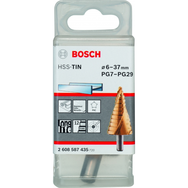 Burghiu in trepte HSS-TIN cu canelura spiralata: durata de viata 125 %.