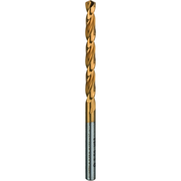 Burghiul din metal HSS-TIN este fabricat conform cu standardul DIN 338. Burghiul este de tip N (unghi canal), are un varf de 135 grade si toleranta pentru diametru h8.