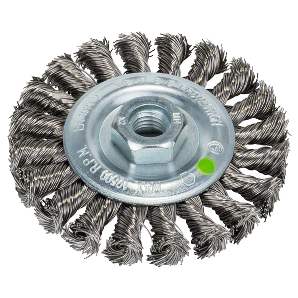 Perie-disc pentru polizor unghiular si polizor drept – sarma impletita, inoxidabila, 100 mm.