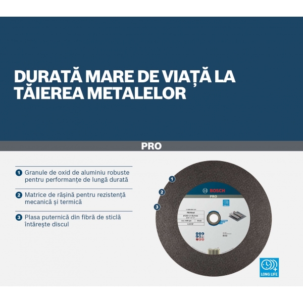 Esti un lucrator in metalurgie in cautarea unui disc de taiere cu o durata de viata mai lunga pe care sa-l poti folosi cu debitatorul tau? Incearca discul PRO Metal. L-am creat folosind granule abrazive de inalta calitate pentru rezistenta si durabilitate.