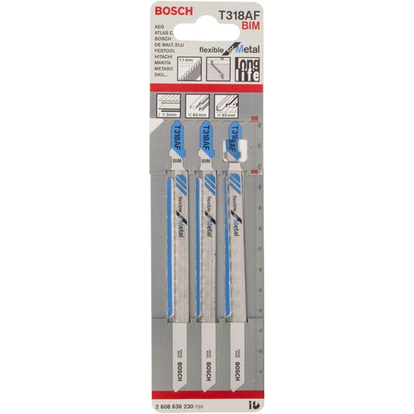Bosch - T 318 AF - Set panze fierastrau pendular, tija cu un prag de prindere (T), 132 mm, metal, taiere dreapta, fina, 5 bucati