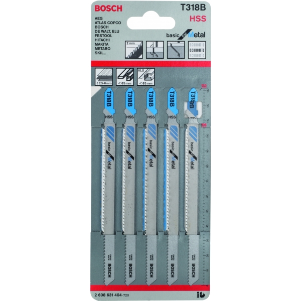 Bosch - T 318 AF - Set panze fierastrau pendular, tija cu un prag de prindere (T), 132 mm, metal, taiere dreapta, fina, 5 bucati