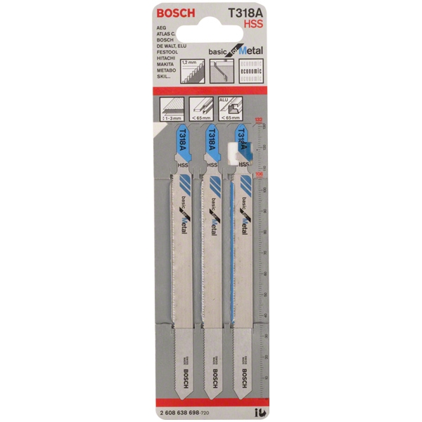 Bosch - T 118 BF - Set panze fierastrau pendular, tija cu un prag de prindere (T), 92 mm, metal, taiere dreapta, fina, 5 bucati