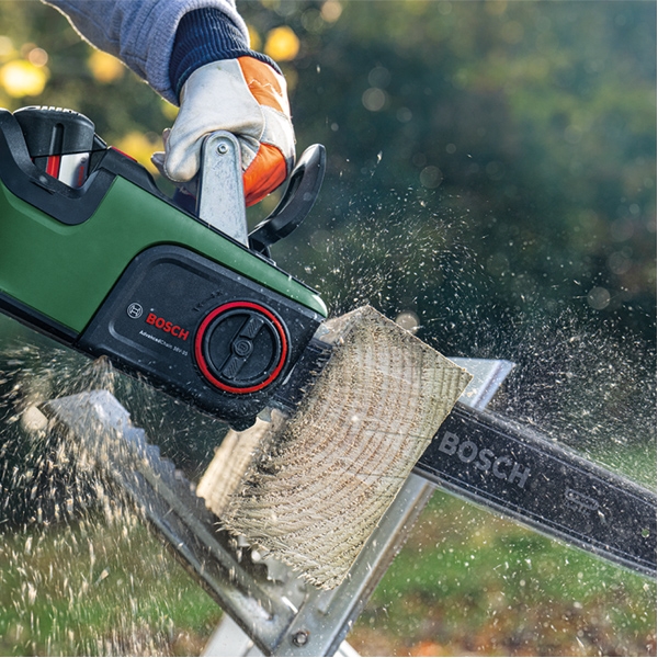 Abordeaza sarcinile de taiere a lemnului si sarcinile ample de taiere a crengilor cu ajutorul unui fierastrau cu lant puternic, cu acumulator.