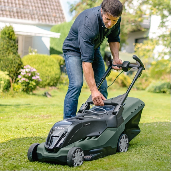 Masina de tuns iarba Bosch AdvancedRotak 36-890 pentru tundere impresionant de silentioasa - functii de confort si rezultate excelente.