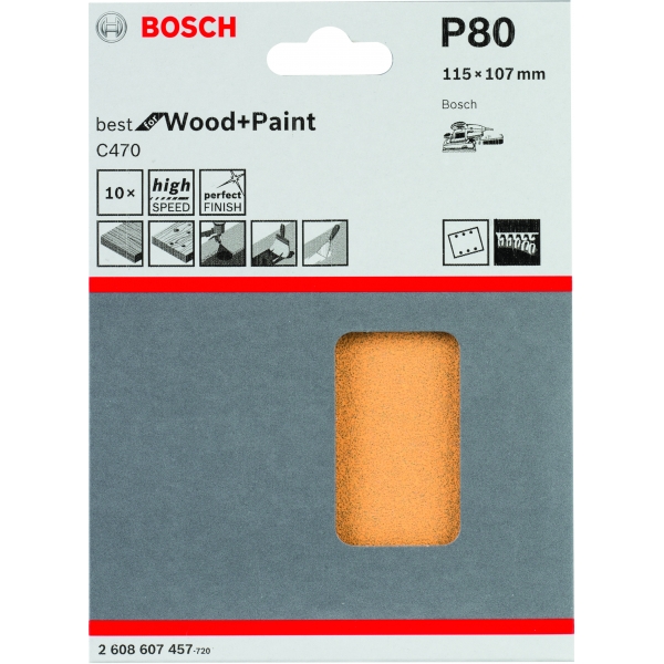 Bosch - EXPERT C470 - Foaie abraziva dreptunghi, 115x107 mm, 6 gauri, granulatie 80, 10 buc