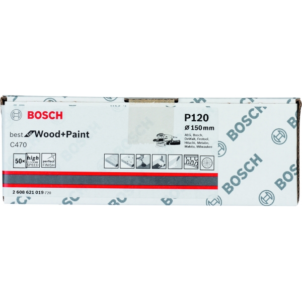 Bosch - C450 - Set foi abrazive rotunde, 150 mm, granulatie 120, 6 gauri, 50 bucati