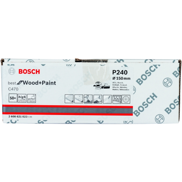 Bosch - C450 - Set foi abrazive rotunde, 150 mm, granulatie 80, 6 gauri, 50 bucati