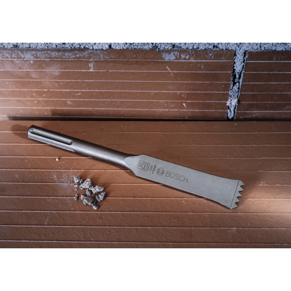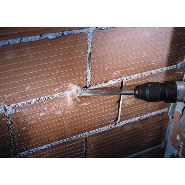 Cand renovezi zidaria din caramida, trebuie sa ai grija sa nu deteriorezi caramizile. Am proiectat dalta pentru mortar PRO SDS max-4C pentru a fi durabila si usor de ghidat pentru renovatori care trebuie sa razuiasca mortarul din rosturile din tocurile ferestrelor, tocurile usilor si zidarie fara a deteriora caramizile.