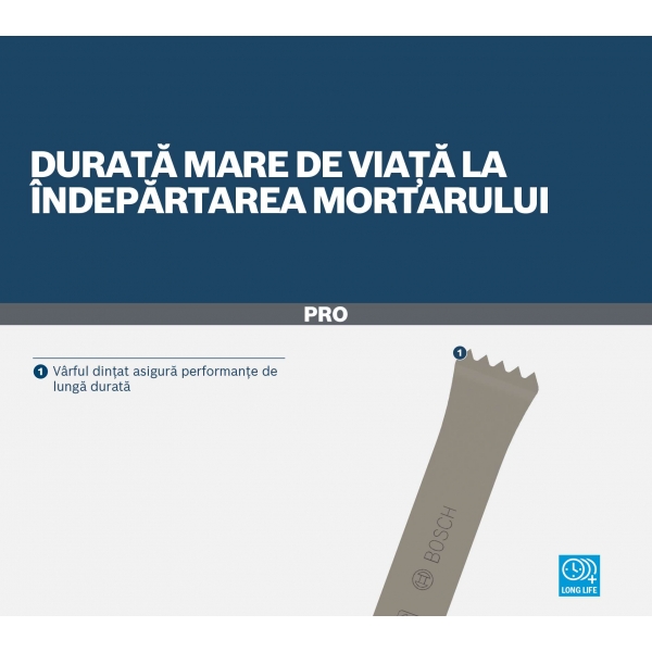 Varful dintat asigura performante de lunga durata ori de cate ori trebuie sa indepartati mortarul din zidarie.