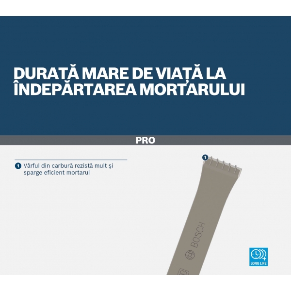 Pentru indepartarea eficienta a mortarului - de exemplu, la indepartarea mortarului dintre caramizi si la indepartarea mortarului din rosturile din tocurile ferestrelor si ale usilor