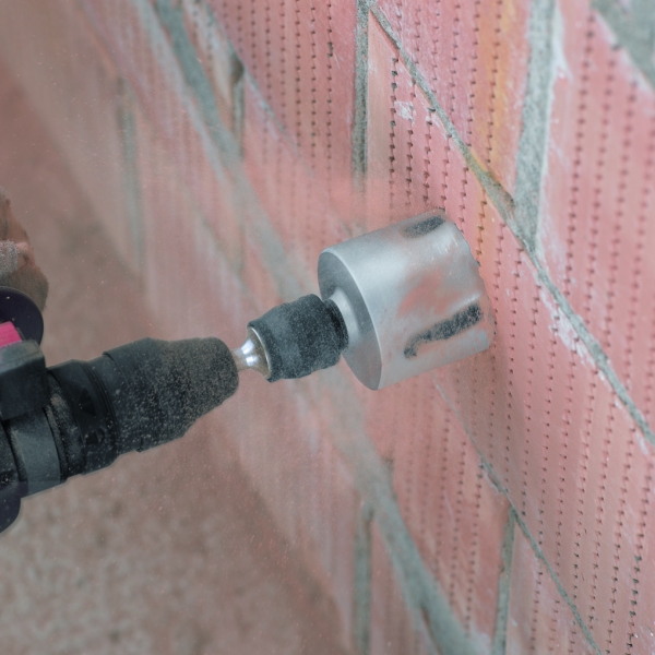 Adaptor Power Change pentru fixare rapida, sigura si apoi desprinderea burghiului de centrare si a carotei cu un clic pentru indepartarea rapida a miezului rezultat la gaurire.