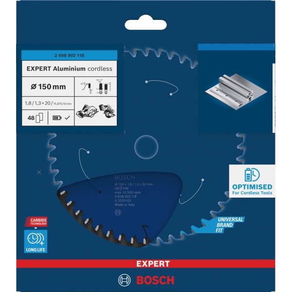 EXPERT Aluminium cordless este o panza de fierastrau circular pentru lucrarile pe care trebuie sa le efectuati cu fierastraul circular portabil cu acumulator. Profilul sau foarte subtire prelungeste durata de utilizare a bateriei fierastraului circular. Aceasta panza de fierastrau circular va va ajuta sa taiati profiluri late de aluminiu, eficient si cu usurinta.