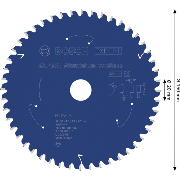 Panza de fierastrau circular EXPERT Aluminium cordless, 150 x 1,8/1,3 x 20 mm, T48