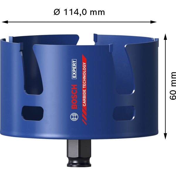Cu doar cativa dinti uriasi din carburi pe corpul sau din otel, EXPERT Construction Material PC Plus taie cu adevarat. Fantele sale mari sunt optimizate pentru indepartarea rapida a aschiilor, astfel incat taie rapid orice, de la caramida la lemn si placi aglomerate. Tehnologia cu carburi (Carbide Technology) de la Bosch este un amestec optim din cele mai dure materiale si asigura o viata extrem de lunga.