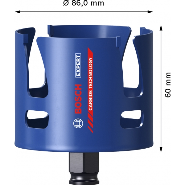 Cu doar cativa dinti uriasi din carburi pe corpul sau din otel, EXPERT Construction Material PC Plus taie cu adevarat. Fantele sale mari sunt optimizate pentru indepartarea rapida a aschiilor, astfel incat taie rapid orice, de la caramida la lemn si placi aglomerate. Tehnologia cu carburi (Carbide Technology) de la Bosch este un amestec optim din cele mai dure materiale si asigura o viata extrem de lunga.