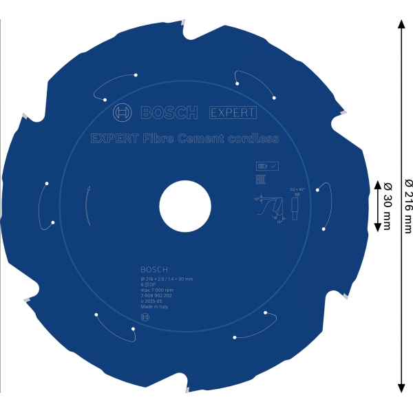 Panza de ferastrau circular EXPERT Fibre Cement cordless, 216 x 2/1,4 x 30 mm, T6