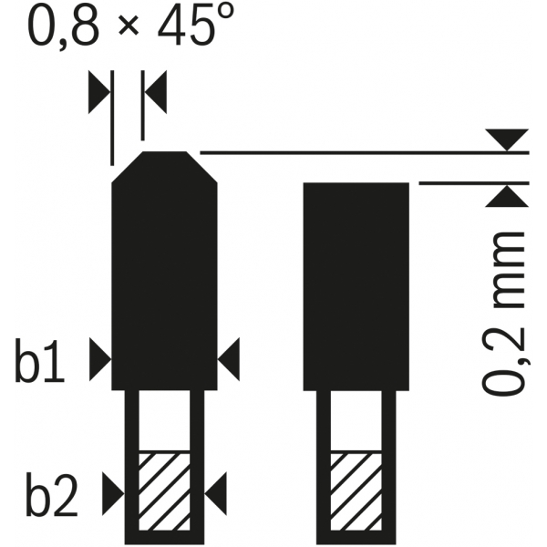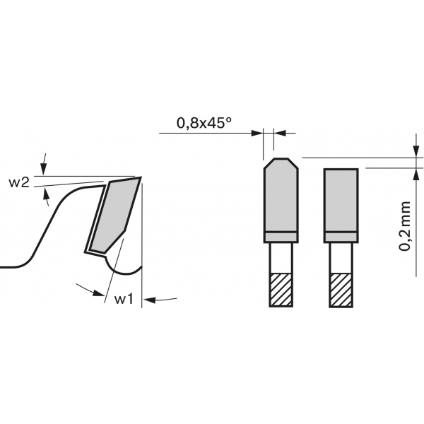 Dintele plat este urmat de un dinte trapezoidal ceva mai inalt. Dintele mai inalt taie preliminar materialul mai ingust decat taietura finala, evitandu-se astfel ruperea dintilor in materialele casante.