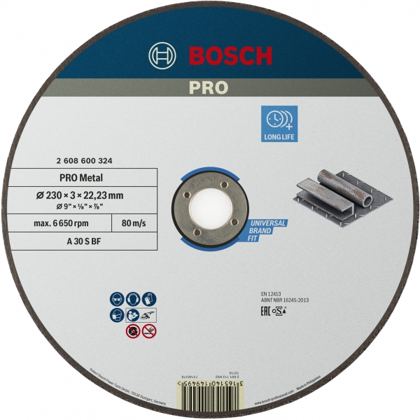 Am fabricat discul de taiere durabil PRO Metal cu granule de oxid de aluminiu premium, pentru a ne asigura ca taie eficient. De asemenea, am combinat granulatia cu materiale de umplutura functionale si le-am incorporat intr-o matrice de rasina fenolica pentru rezistenta mecanica si termica. Am consolidat discul cu o plasa din fibra de sticla de inalta calitate pentru a asigura o performanta mai sigura si mai stabila.
