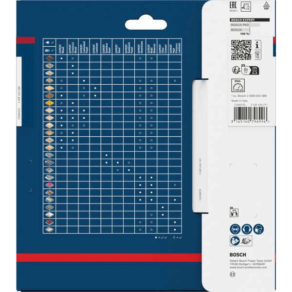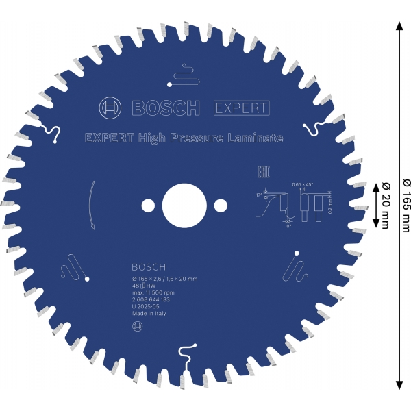 EXPERT High Pressure Laminate are dinti fini si ascutiti din carburi, realizati folosind tehnologia cu carburi Bosch. Acest lucru inseamna ca este durabila si face taieturi curate si precise. I-am adaugat un strat suplimentar pentru a preveni acumularea de caldura si pentru a o proteja de coroziune.