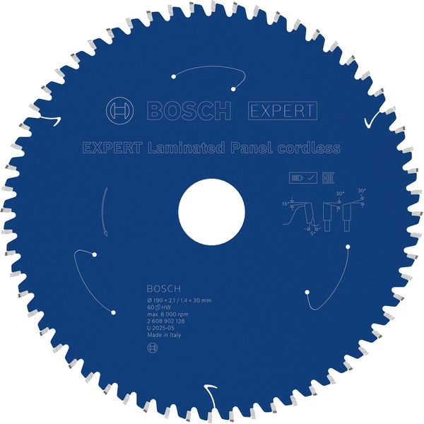 Panza de fierastrau circular EXPERT Laminated Panel cordless, 190 x 2,1/1,4 x 30 mm, T60