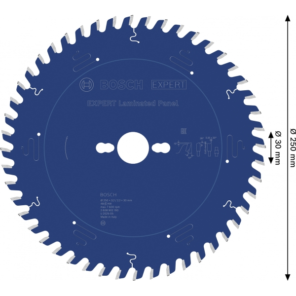 EXPERT Laminated Panel are dinti fini si ascutiti din carburi, realizati folosind tehnologia cu carburi Bosch. Acest lucru inseamna ca este durabila si face taieturi curate si precise. I-am adaugat un strat suplimentar pentru a preveni acumularea de caldura si pentru a o proteja de coroziune.