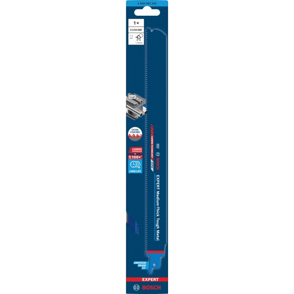 Orice profesionist care lucreaza in mod regulat cu metale de grosime medie va aprecia panza de fierastrau sabie Bosch EXPERT Medium-Thick Tough Metal.