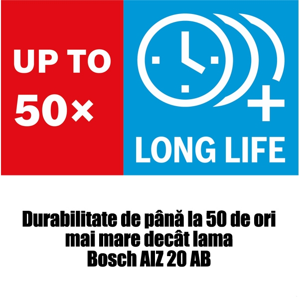Durabilitate de pana la 50 de ori mai mare decat lama Bosch AIZ 20 AB.