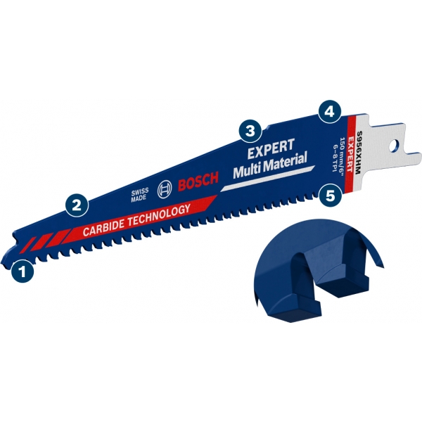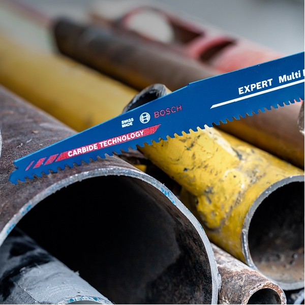 O adevarata solutie pentru problema panzelor care pur si simplu nu dureaza pe santierele moderne, panza de fierastrau sabie Bosch EXPERT Multi Material este un partener de incredere, care taie mai mult decat metal si lemn. Materialele plastice, materialele compozite pentru constructii si elementele prefabricate utilizate pe santiere sunt taiate fara probleme datorita tehnologiei cu carburi (Carbide Technology) de la Bosch. Pasul progresiv al danturii este conceput pentru a taia atat materialele subtiri, cat si pe cele groase.
