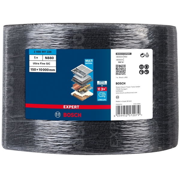 Rola de postav EXPERT N880 este un exemplu al tehnologiei Surface Structure de la Bosch: combina cea mai recenta tehnologie in materie de abrazivi si expertiza in ceea ce priveste fabricatia intr-un postav unic, extrem de durabil. Produsul tridimensional realizat cu tehnologie de incrucisare economiseste banii profesionistilor datorita performantei sale de durata si reduce la minimum frustrarea provocata de foile de slefuit manual a caror granulatie se desprinde.
