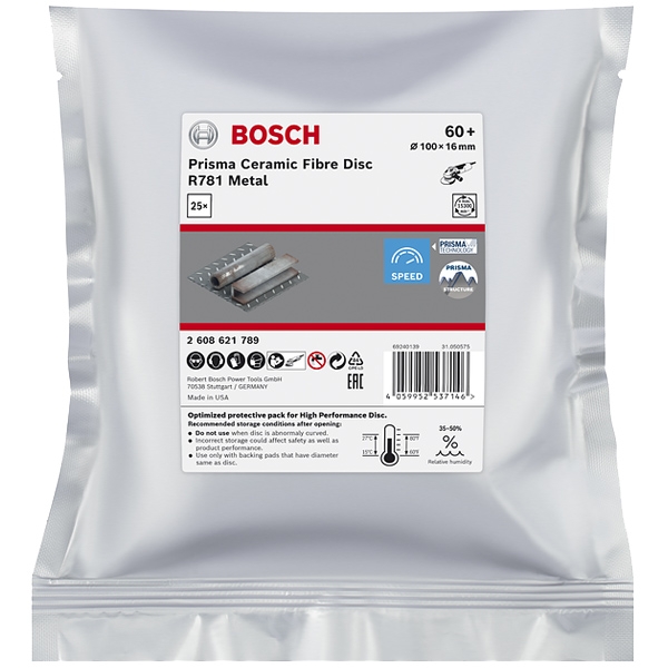 Fibrodiscul Bosch EXPERT R781 pentru metal permite slefuirea mult mai rapida a metalului comparativ cu discurile conventionale, fara a face compromisuri in privinta calitatii. Prin urmare, ofera un salt inainte in productivitate pentru profesionistii care folosesc polizoare unghiulare.