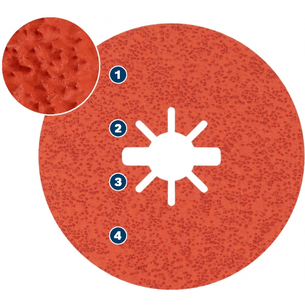 Straturile de racire ale invelisului superior al discului din fibre ajuta la transferul de caldura in timpul procesului de slefuire, permitand o slefuire mai rapida, o perioada mai indelungata.