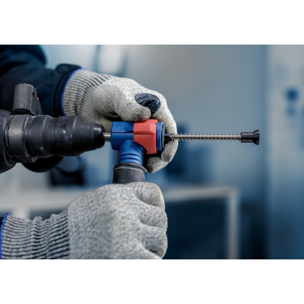 Instalatorii si lucratorii din constructii stiu prea bine ca gaurirea in beton produce cantitati mari de praf. Devine incomod mai ales atunci cand trebuie sa gauriti deasupra capului sau sa gauriti si sa curatati o serie de orificii pentru ancore chimice sau mecanice. Am conceput setul EXPERT SDS Clean plus-8X pentru aceste sarcini mai solicitante. Acesta gaureste si elimina praful si resturile in acelasi timp, ajutandu-va sa renuntati la sesiunile obositoare de curatare.