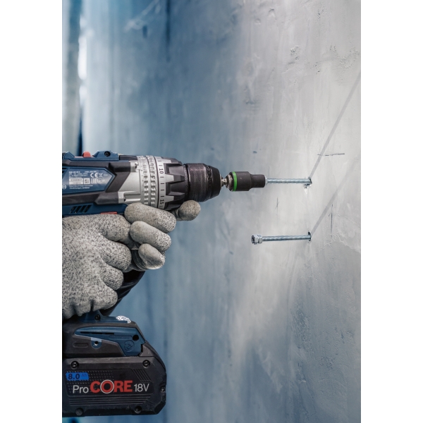 Setul EXPERT SDS Clean plus-8X va ajuta sa indepartati praful atunci cand gauriti deasupra capului sau lucrati la o serie de gauri pentru ancore mecanice si chimice. Burghiul este prevazut cu un cap cu 4 taisuri complet din carburi si are un canal de aspirare in interior. L-am echipat cu conectorul SDS Clean plus, care se potriveste tuturor burghielor SDS Clean plus-8X si este usor de montat si detasat. Acesta conecteaza burghiul la aspiratoarele de praf si asigura extragerea prafului si a bucatilor mici de beton din gaura prin intermediul canalului de aspiratie integrat. Capacul de praf premontat va ajuta sa colectati resturile si praful pe care le obtineti atunci cand incepeti sa gauriti.