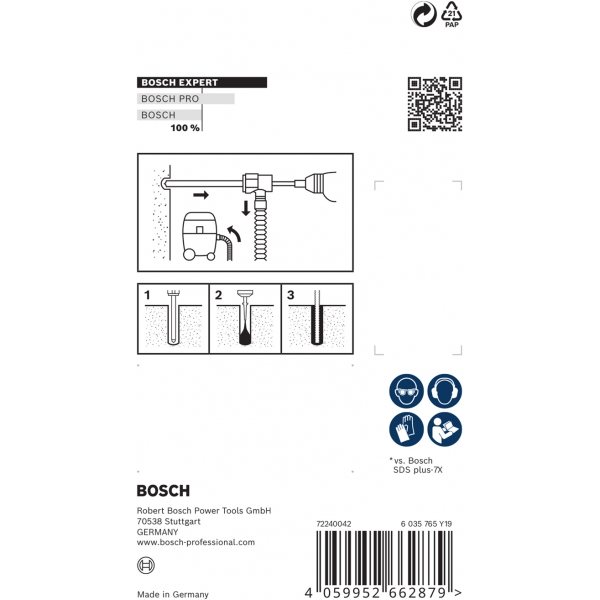 Reducerea prafului este de pana la 25 de ori mai buna decat in cazul unui burghiu Bosch EXPERT SDS plus-7X
