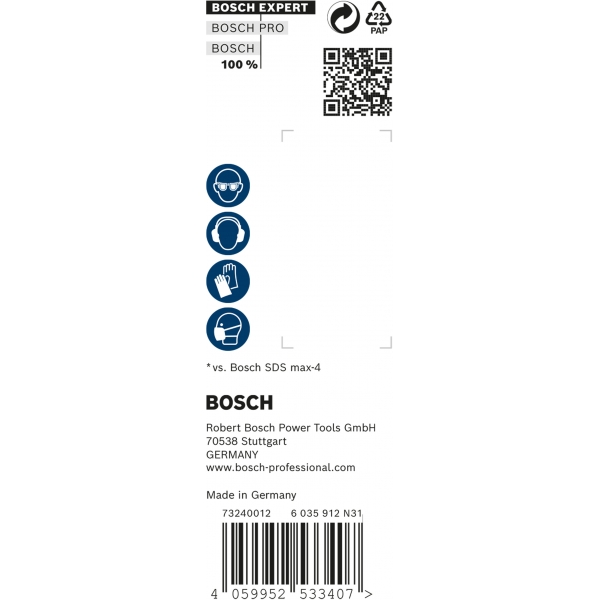 Pentru profesionistii in constructii care foreaza in mod regulat in beton si beton armat, cum ar fi ancorele grele sau extensiile fier betonului, burghiul Bosch EXPERT SDS max-8X ofera performante, fiabilitate si longevitate fara egal. Este accesoriul EXPERT ideal pentru masinile de gaurit cu ciocan rotopercutor SDS max.