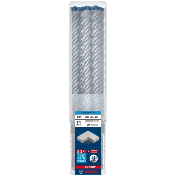 Pentru profesionistii in constructii care gauresc in mod regulat betonul si betonul armat, de exemplu pentru fixari si instalatii, burghiul Bosch EXPERT SDS plus-7X ofera performante, fiabilitate si longevitate fara egal. Este accesoriul EXPERT ideal pentru masinile de gaurit cu ciocan rotopercutor SDS plus.