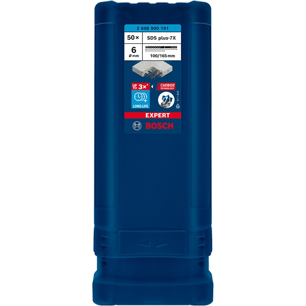 Pentru profesionistii in constructii care gauresc in mod regulat betonul si betonul armat, de exemplu pentru fixari si instalatii, burghiul Bosch EXPERT SDS plus-7X ofera performante, fiabilitate si longevitate fara egal. Este accesoriul EXPERT ideal pentru masinile de gaurit cu ciocan rotopercutor SDS plus.